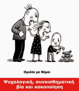 Η βία δεν κάνει διακρίσεις σε φύλο, ηλικία και κοινωνική τάξη. Βία και κακοποίηση. Λέξεις γνώριμες και συχνά οικείες. Κακοποιημένες γυναίκες, κακοποιημένα παιδιά, κακοποιημένοι ηλικιωμένοι, κακοποιημένοι άντρες. Η κακοποίηση στο συζυγικό σπίτι, στην πατρογονική εστία, στην εργασία, στο πανεπιστήμιο, στο σχολείο. «Σε μένα αποκλείεται να συμβεί…», «Εμένα ο άντρας μου δεν κάνει τέτοια…». Πρώτο χαστούκι, …