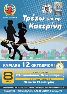 O Οργανισμός Παιδείας Πολιτισμού Αθλητισμού και Πρόνοιας του Δήμου Κατερίνης και ο Αθλητικός Πολιτιστικός Σύλλογος Δρομέων Πιερίας «ΖΕΥΣ» διοργανώνουν και προκηρύσσουν τον 3ο Αγώνα Δρόμου 8 χιλιομέτρων, με την επωνυμία «ΤΡΕΧΩ ΓΙΑ ΤΗΝ ΚΑΤΕΡΙΝΗ». Ως ημερομηνία διεξαγωγής ορίζεται η Κυριακή 12 Οκτωβρίου 2014 και ώρα 11:00 π.μ. Και φέτος η διοργάνωση εντάσσεται στο επίσημο πρόγραμμα …