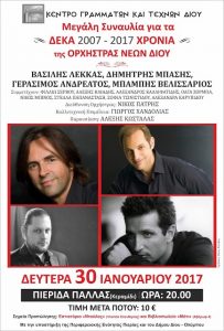 ΕΚΔΗΛΩΣΗ ΓΙΑ ΤΑ ΔΕΚΑ ΧΡΟΝΙΑ ΤΗΣ ΟΡΧΗΣΤΡΑΣ ΝΕΩΝ ΔΙΟΥ ΔΕΥΤΕΡΑ 30 ΙΑΝΟΥΑΡΙΟΥ 2017 – ΠΙΕΡΙΔΑ ΠΑΛΛΑΣ