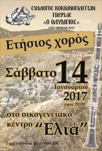 Το Διοικητικό Συμβούλιο της Ένωσης Συνταξιούχων Εμπόρων Ν. Πιερίας σας προσκαλεί σε συνεστίαση κοπής της πρωτοχρονιάτικης πίτας την Κυριακή 15 Ιανουαρίου 2017 και ώρα 19.00 στο κέντρο ΜΕΘΕΞΙΣ (επί της οδού Νικ.Δίκα 8, έναντι ΚΤΕΛ Κατερίνης και s/m ΑΒ Βασιλόπουλος). Η συμμετοχή σας στη συνεστίαση θα αποτελέσει τιμή για την Ένωσή μας. Με εκτίμηση, Για …