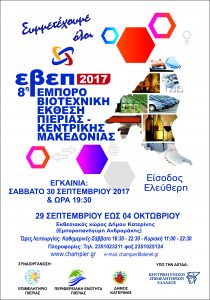 Μεγάλη ποικιλία εκθεμάτων Εκθεσιακές προσφορές Ψυχαγωγικές & εκπαιδευτικές δραστηριότητες Εκδηλώσεις επιχειρηματικού χαρακτήρα Δωρεάν στάθμευση Ελεύθερη είσοδος Η 8η Εμποροβιοτεχνική Έκθεση Πιερίας – Κεντρικής Μακεδονίας ανοίγει τις πύλες της την Παρασκευή 29 Σεπτεμβρίου, στις 4:30 το απόγευμα και υποδέχεται μέχρι και την Τετάρτη 4 Οκτωβρίου 2017 τους χιλιάδες επισκέπτες της. ΟΙ ΕΚΘΕΤΕΣ Τα εκθέματα καλύπτουν ένα …
