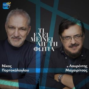 Νίκος Πορτοκάλογλου – Λαυρέντης Μαχαιρίτσας «Τι έχει μείνει απ’ τη φωτιά» Μουσική –Στίχοι: Νίκος Πορτοκάλογλου Έχοντας και οι δύο την αφετηρία τους στις αρχές της δεκαετίας του ’80, ο Λαυρέντης Μαχαιρίτσας και ο Νίκος Πορτοκάλογλου άφησαν το στίγμα τους σε εκείνη την δεκαετία με τα δυο ιστορικά τους συγκροτήματα, τους Τερμίτες και τους Φατμέ που …