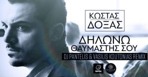 Το ΝΕΟ επίσημο Remix των DJ Pantelis & Vasilis Koutonias στην μεγάλη επιτυχία του ΚΩΣΤΑ ΔΟΞΑ “Δηλώνω Θαυμαστής Σου”. ΑΚΟΥΓΕΤΑΙ ΔΥΝΑΤΑ! Μουσική: Κωνσταντίνος Παντζής Στίχοι: Γιάννης Λιόντος Κυκλοφορεί απο την Spin Records και την Energy! Records