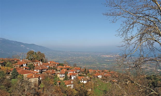 Τώρα το βλέµµα χαϊδεύει τα σπίτια του Παλιού Παντελεήµονα, που µε φόντο τον θεϊκό Όλυµπο κυµατίζουν στη λοφογραµµή, άνθη της πέτρας, του ξύλου και του κεραµιδιού, φτιαγµένα τον 17ο και τον 18ο αιώνα. Και ανάµεσά τους, όλα καµωµένα από τα ίδια φυσικά υλικά, η βρύση µε το αδιάκοπο µουρµούρισµά της που ταξιδεύει τα φύλλα του πλατάνου, η πλακόστρωτη πλατεία, η εκκλησιά. Και τα καλντερίµια µε τα πεσµένα φύλλα που θυσιάζονται για να φέρουν τον χειµώνα και µετά την άνοιξη, η οµίχλη που επελαύνει συχνά για να τυλίξει µε µυστήριο τον τόπο, τα σωριασµένα παντού, σε κάθε γωνιά, κοµµένα ξύλα. Τότε είναι που ψάχνεις ζεστασιές και αγκαλιές, του τζακιού ή της συντροφιάς, γύρω από µια κούπα τσάι του Ολύµπου ή ένα ποτηράκι µυρωδάτο τσίπουρο από κούµαρα. Όµως µην αναζητήσετε το καζάνι του Μιχάλη Χατζή για να δείτε αυτό το δάκρυ της χαράς να σταλάζει ηδονικά. Αυτή την εποχή τρυγούν τις κουµαριές και φυλάνε τα ώριµα κούµαρα σε βαρέλια να ζυµώνονται. Το καζάνι θα πάρει πάλι φωτιά τον Μάιο µόνο για τα κούµαρα…