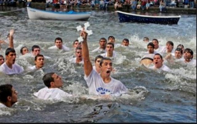 Η Κατάδυση του Τιμίου Σταυρού, που ακολουθεί τον Μεγάλο Αγιασμό.