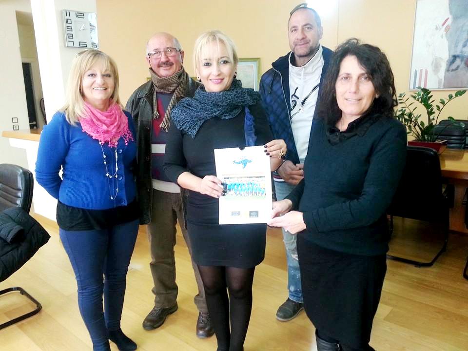 Εθιμοτυπική επίσκεψη στο γραφείο της αντιπεριφερειάρχη Πιερίας κ. Σοφίας Μαυρίδου πραγματοποίησε σήμερα Δευτέρα 12-1-15 η Διοίκηση της γυναικείας ποδοσφαιρικής ομάδας “ΝΕΦΕΛΕΣ” με επικεφαλής την πρόεδρο κ. Μέλα Σιδηροπούλου. Η αντιπεριφειρειάρχης υποδέχτηκε εγκάρδια στο γραφείο της τα μέλη της διοίκησης και αφού αντάλλαξαν ευχές για τον καινούργιο χρόνο, η αντιπροσωπεία Νεφέλες Γυναικείο Ποδόσφαιρο πρόσφεραν στην κ. Μαυρίδου το νέο ημερολόγιο για το 2015, το οποίο απεικονίζει τις Νεφέλες που χρωματίζουν τους μήνες, όπως χαρακτηριστικά είπε με ενθουσιασμό, ξεφυλλίζοντάς το η κ. αντιπεριφερειάρχης και αμέσως μετά συζήτησαν θέματα συνεργασίας.
