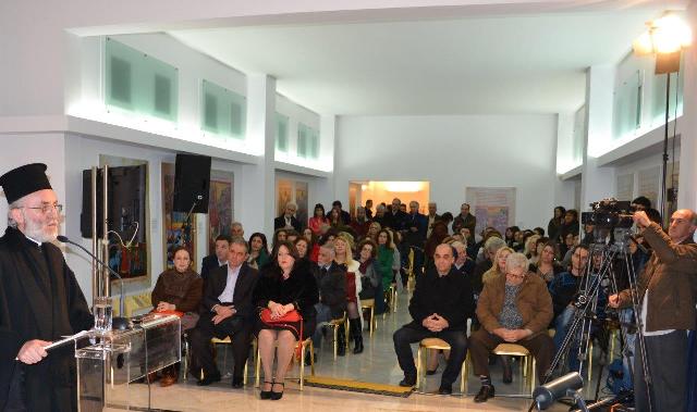 Χαιρετίζοντας εκ μέρους του Σεβασμιοτάτου Μητροπολίτη Κίτρους, Κατερίνης και Πλαταμώνος κ. Γεωργίου, ο Πανοσιολογιότατος Αρχιμανδρίτης π. Ιωακείμ Οικονομίκος, αφού είπε τα «χρόνια πολλά σε όλες τις γυναίκες του κόσμου», απευθυνόμενος στη συνέχεια στο γυναικείο ακροατήριο και ευχήθηκε τα εξής: Να συνεχίζετε τον αγώνα σας με «ησύχιο πείσμα», να συνεχίζετε το έργο σας και την προσφορά σας στην ανθρωπότητα, όπως έλεγε κι ο Γέροντάς μας ο κ. Αγαθόνικος.