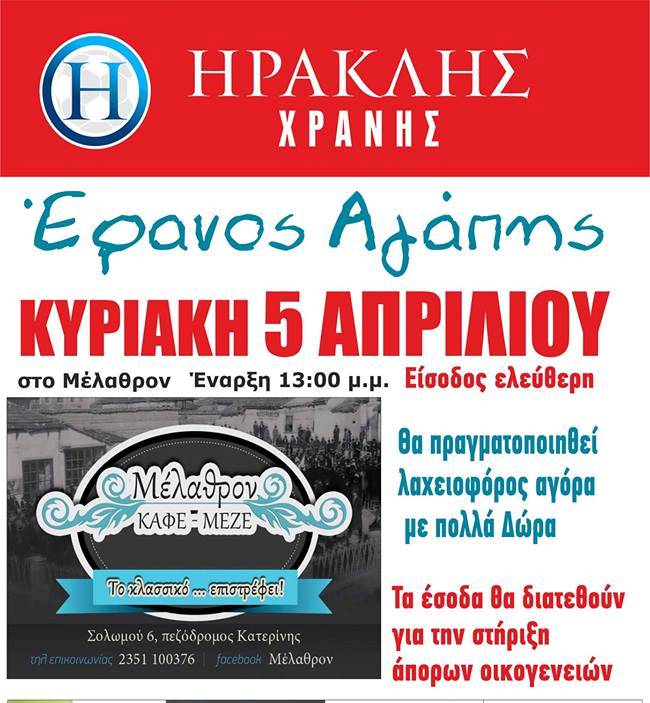 Η ποδοσφαιρική ομάδα “ΗΡΑΚΛΗΣ ΧΡΑΝΗΣ” πραγματοποιεί Έρανο Αγάπης -Λαχειοφόρο Αγορά με σκοπό την ενίσχυση αδύναμων οικογενειών του Νομού μας.