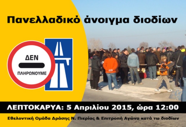 Την Κυριακή 5 Απριλίου 2015, ώρα 12:00 όλοι στο σταθμό διοδίων της Λεπτοκαρυάς.