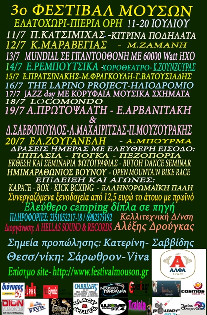 Κορυφαίες εκδηλώσεις στο 3ο Φεστιβάλ Μουσών, από 11 έως 20 Ιουλίου 2014