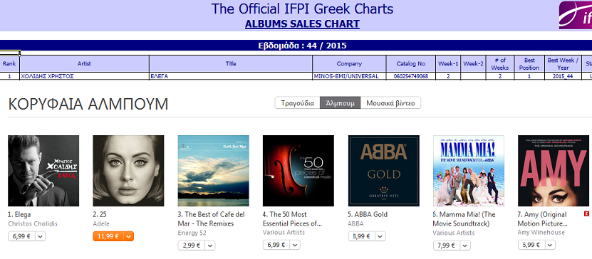 Στην κορυφή βρίσκεται ο ολοκαίνουργιος δίσκος του Χρήστου Χολίδη «Ελεγα».