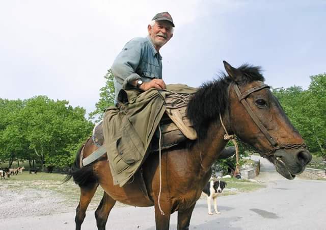Αυτός είναι ο μπάρμπα Νίκος ο Βελώνης (Τζαβέλας το ψευδώνυμο) από την Βροντού Πιερίας!! Ηλικία κοντά στα 90. Σαν την πέτρα και σαν το ατσάλι σμιλευμένος!! Ένας άνθρωπος της φύσης… ο οποίος μέχρι σήμερα ζει στον Όλυμπο στην περιοχή “Κρεβάτια” κοντά στο καταφύγιο της Βροντούς!! Μια ζωή εκεί. Για κανένα δικαστήριο κατέβαινε στον σύγχρονο κόσμο μας και γέμιζε αρνητισμό!! Πετούσε γρήγορα το κουστούμι από πάνω του που το ένοιωθε θηλιά στο λαιμό, ανέβαινε στο άλογό του και σφυριζε ανηφορίζοντας για το βουνό του όλο χαρά!!! Αυτός και το κοπάδι του τα γίδια!! Πατέρας 5 παιδιών. 4 κόρες και ένας Γιος. Πάμπολα εγγόνια και δισέγγονα!! Δυνατή και ικανή οικογένεια!! Όλοι αγωνιστές της Ζωής!!! Καθαρός και αγνός άνθρωπος που δεν τον άγγιξε η τεχνολογία και το σύγχρονο άγχος της!! Εάν έχεις την τύχη και τον συναντήσεις τυχαία στον Όλυμπο, καλοχαιρέτα τον με σεβασμό και αγάπη και θα νοιώσεις την γλυκάδα του αληθινού ανθρώπου και της ατόφιας αξίας!!! Να”σαι καλά σαν τον γερο-Όλυμπο Μπάρμπα Νίκο!! Είσαι το Αλάτι της Γης!!!!!! Εύχομαι να σε πετύχω καβάλα στο άλογό σου με το χαμόγελό σου!!!!!!!