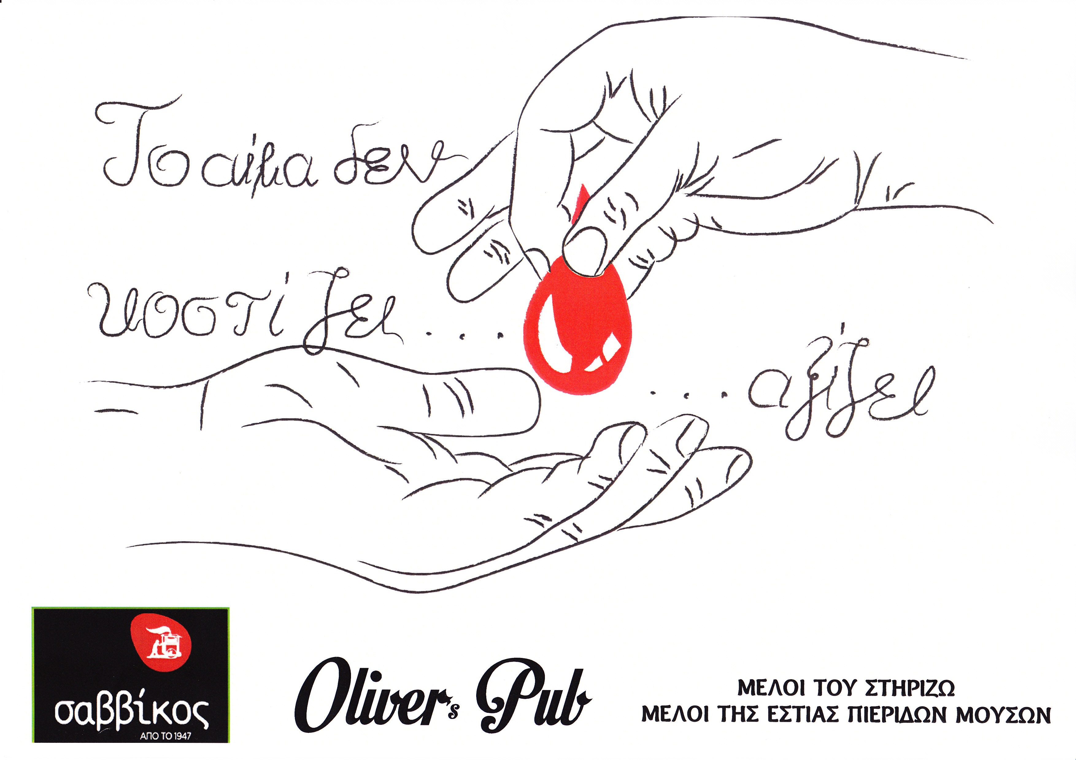απεικονίζει ένα χέρι που προσφέρει μια σταγόνα αίματος στο αντίστοιχο χέρι ενός