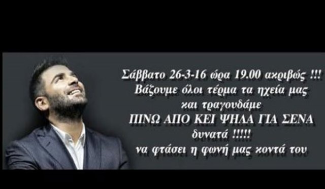 Συγκεκριμένα, ο Τριαντάφυλλος Παντελίδης ανέβασε μια αφίσα στον προσωπικό του λογαριασμό στο Facebook, στην οποία αναγραφόταν το εξής μήνυμα: «Σάββατο 26-3-2016!! Βάζουμε όλοι τέρμα τα ηχεία μας και τραγουδάμε ΠΙΝΩ ΑΠΟ ΕΚΕΙ ΨΗΛΑ ΓΙΑ ΣΕΝΑ δυνατά!!!!