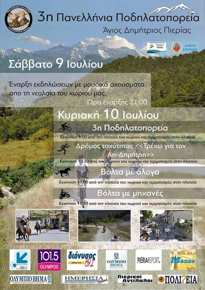 ΠΟΔΗΛΑΤΟΠΟΡΕΙΑ ΘΑ ΠΡΑΓΜΑΤΟΠΟΙΗΘΕΙ ΑΥΤΗ ΤΗΝ ΚΥΡΙΑΚΗ 10 ΙΟΥΛΙΟΥ ΣΤΟΝ ΑΓΙΟ ΔΗΜΗΤΡΙΟ ΠΙΕΡΙΑΣ ΣΤΟ ΠΛΑΙΣΙΟ ΤΟΥ ΑΝΤΑΜΩΜΑΤΟΣ 2016 ΤΟ ΟΠΟΙΟ ΕΙΝΑΙ ΣΤΙΣ 15 ΚΑΙ 16 ΙΟΥΛΙΟΥ!!!!!