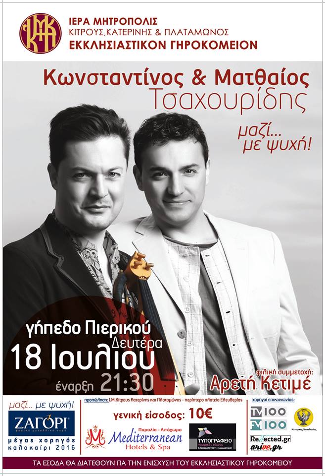 Οι αδελφοί Κωνσταντίνος & Ματθαίος Τσαχουρίδης έρχονται και αυτό το καλοκαίρι με δοξάρι και φωνή να παίξουν και να τραγουδήσουν ό,τι καινούριο και ό,τι παλιό τους αγγίζει… με τη φιλική συμμετοχή της Αρετής Κετιμέ!