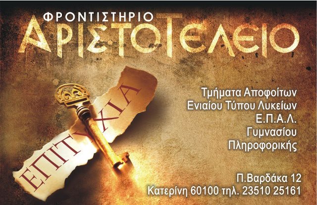 Το Αριστοτέλειο Φροντιστήριο πιστό στην επαγγελματική του συνέπεια παρέχει δωρεάν συμβουλευτική σε γονείς και μαθητές για θέματα επαγγελματικού προσανατολισμού και πληροφορίες για το νέο εκπαιδευτικό σύστημα.