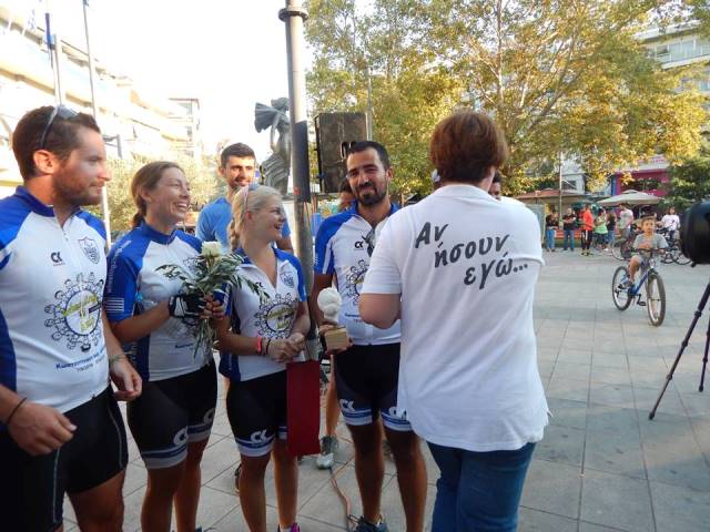 Η ποδηλατάδα στην πόλη της Κατερίνης, με σημείο υποδοχής από ποδηλατιστές της Ποδηλατικής Απόδρασης Πιερίας έξω από τον Κορινό Πιερίας και στην περιοχή ΚΤΕΛ Κατερίνης. Από εκεί όλοι μαζί συνέχισαν με τα ποδήλατά τους μέχρι τον προορισμό την κεντρική πλατεία στις 5,30 το απόγευμα. Κατερίνης, όπου και ξεκίνησαν μετά από μια συγκινητική και θερμή υποδοχή οι εκδηλώσεις.