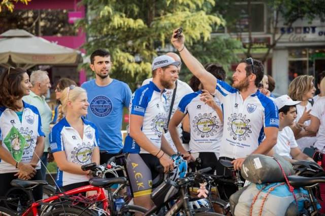 Αξίζει να σημειωθεί ότι στην Κεντρική πλατεία υπήρχε κουτί όπου συγκεντρωνόταν χρήματα από τον κόσμο και πλαστικά καπάκια, τα οποία θα αγοραστούν αμαξίδια για ΑΜΕΑ για την επόμενη πόλη όπου είναι ο προγραμματισμένος επόμενος σταθμός των ποδηλατιστών, ενώ να σημειωθεί πως τα 5 αναπηρικά αμαξίδια παραδόθηκαν στην Κατερίνη από το κίνημα Wheeling2Help πριν φτάσουν οι Ταξιδιάρηδες Ποδηλάτες στην Πόλη μας από χρήματα και καπάκια που συγκεντρώθηκαν στην προηγούμενη Πόλη .