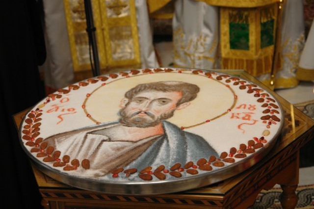 Ειδικότερα, την κυριώνυμη ημέρα της εορτής (Τρίτη 18 Οκτωβρίου), τελέστηκαν Όρθρος και Αρχιερατική Θεία Λειτουργία, προεξάρχοντος του Μητροπολίτη Κίτρους, Κατερίνης και Πλαταμώνος κ. Γεωργίου, ο οποίος κήρυξε και τον Θείο Λόγο. Μετά την απόλυση της Θείας Λειτουργίας, πραγματοποιήθηκε διάλεξη στο Πνευματικό Κέντρο των «ΠΑΤΡΙΩΝ», από τον συγγραφέα-φιλόλογο Κων/νο Γανωτή, ενώ ακολούθησε γεύμα.