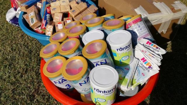 Κατά την διάρκεια των τελευταίων 4 ημερών συγκεντρώθηκε μεγάλη ποσότητα παιδικών τροφών, ειδών κουζίνας και κουβερτών στον Καπνικό Σταθμό Κατερίνης, η οποία το Σάββατο 5 Νοεμβρίου 2016 μεταφέρθηκε με δύο τρέιλερ στην Πέτρα Ολύμπου και μετά από συνεννόηση με την στρατιωτική διεύθυνση της δομής, διανεμήθηκε σε 85 οικογένειες που διαμένουν στο κέντρο φιλοξενίας.
