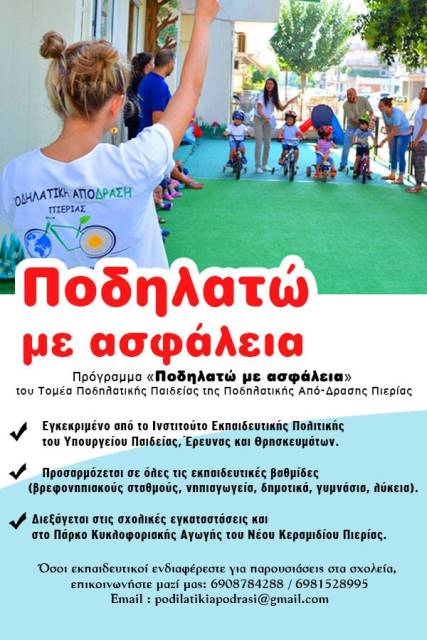 “Ποδηλατώ με ασφάλεια”, το πρόγραμμα του Τομέα Ποδηλατικής Παιδείας του συλλόγου, που έχει καθιερωθεί πλέον στα περισσότερα σχολεία της Πιερίας.