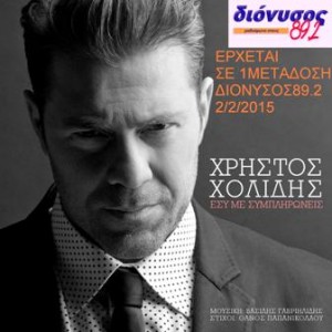 Ο Χρήστος Χολίδης μας παρουσιάζει το νέο του single, προπομπό του άλμπουμ του που θα κυκλοφορήσει το Μάρτιο. Πρόκειται για μία εξαιρετική μπαλάντα με τίτλο «Εσύ με συμπληρώνεις» σε μουσική του Βασίλη Γαβριηλίδη και στίχους του Θάνου Παπανικολάου. «Εσύ με συμπληρώνεις» το τραγούδι που θα αγαπήσετε και θα αφιερώσετε όλοι στο έτερον σας ήμισυ. ΕΡΧΕΤΑΙ …